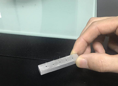 電動牙刷牙刷毛單絲彎曲恢復(fù)率測試塊滿足GB/T40362—2021《電動牙刷 一般要求和檢測方法》標準中第6.4.1章節(jié)試驗要求,試驗要求刷頭耐溫性能經(jīng)浸水試驗后應(yīng)無變化,單絲彎曲恢復(fù)率應(yīng)不小于60%。本測試金屬標準塊主要用來測量電動牙刷毛單絲彎曲恢復(fù)率檢測,通過標準測試量塊+量角器,可測得單絲彎曲恢復(fù)率。