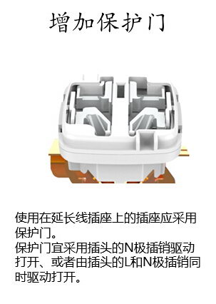 1.增加保護門:強制要求插線板插孔必須設置保護門,避免兒童因為手指或者金屬物體誤觸導致觸電事故。