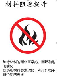 3.材料阻燃提升:對絕緣材料要求增加,ABS外殼不符合新的要求。