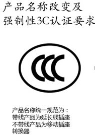 4.產品名稱改變及強制性3C認證要求:產品名稱統一規范為帶線產品為延長線插座,不帶線產品為移動插座轉換器。