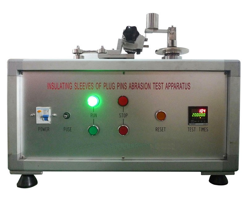 26 | 插頭絕緣護套耐磨損試驗機 (GS-HT305) | 符合滿足GB/T2099.1-2021標(biāo)準(zhǔn)中24.8條款及圖28、IEC 60884-1圖28和BS1363圖9標(biāo)準(zhǔn)試驗要求 | 設(shè)備概述: 本裝置符合滿足GB/T2099.1-2021標(biāo)準(zhǔn)中24.8條款及圖28、IEC 60884-1圖28和BS1363圖9的標(biāo)準(zhǔn)要求,適用于檢測插頭的插銷絕緣襯套的耐磨損性能。 設(shè)備組成及工作原理: 試驗裝置是由一個水平放置的橫梁和線性運動的夾具座組成,橫梁末端裝有直徑為1mm的短鋼絲彎成的U字形頭(U字形的兩個點垂直固定在橫梁上),鋼絲U型底邊為6mm直線工作部分。 將U型鋼絲6mm直線底邊壓在插銷絕緣套上,電機帶動安裝有插銷的夾具座做前后往復(fù)運動,從而鋼絲與插銷絕緣試樣摩擦進行試驗。 主要技術(shù)參數(shù): 1、工作電源:AC220V、50HZ; 2、工作次數(shù):1~999999可預(yù)置 ; 3、刮磨頻率:30次/分鐘,往、返各計一次; 4、壓力荷重:4N; 5、工作行程:9mm ; 6、工位:單工位(可定制雙工位)。 | |